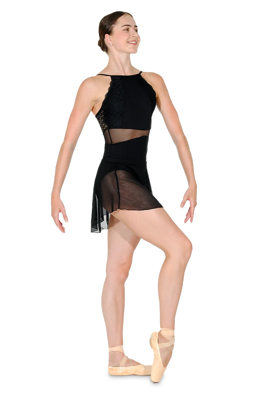 The delicate Naira Skirt is a a perfect accompaniment to many leotards in your dance wardrobe. Available in three colours – Black, Wisteria and Dark Prussian Blue – the sheer fabric falls lower at the back to give a stunning silhouette.